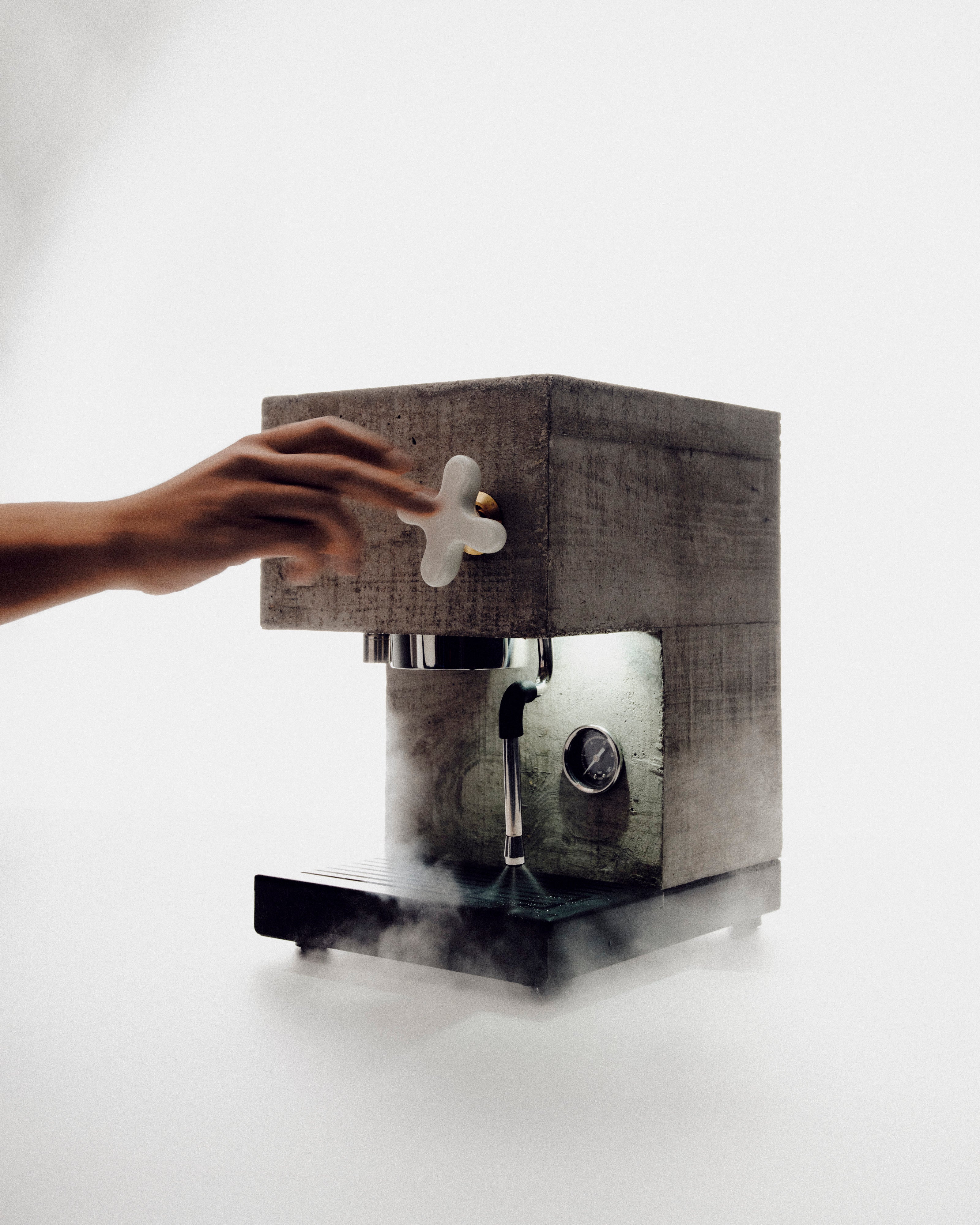 A design statement which also happens to make high-quality, delicious espresso. Made from hand-cast concrete, R2 features porcelain touch-points, matte black powder coated steel and brass highlights.