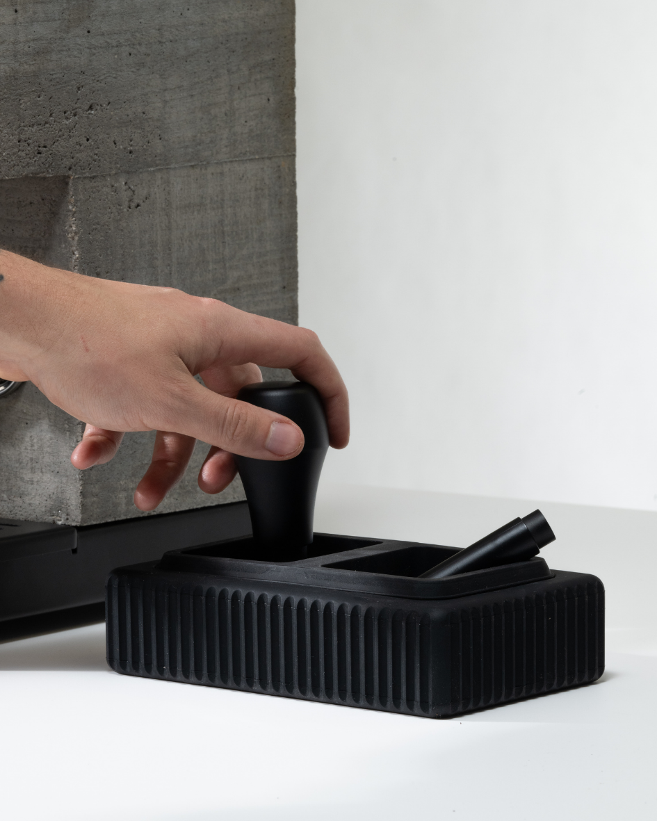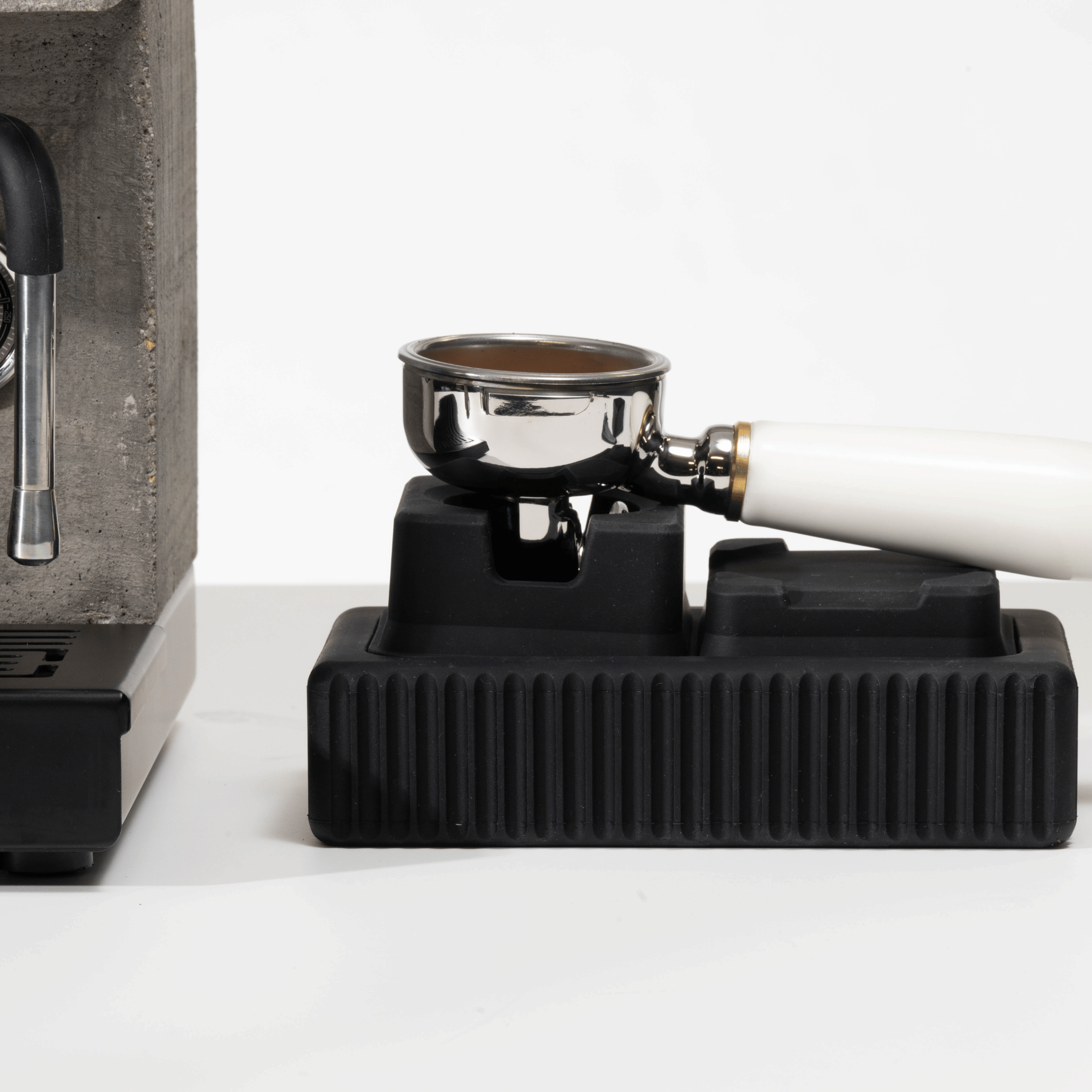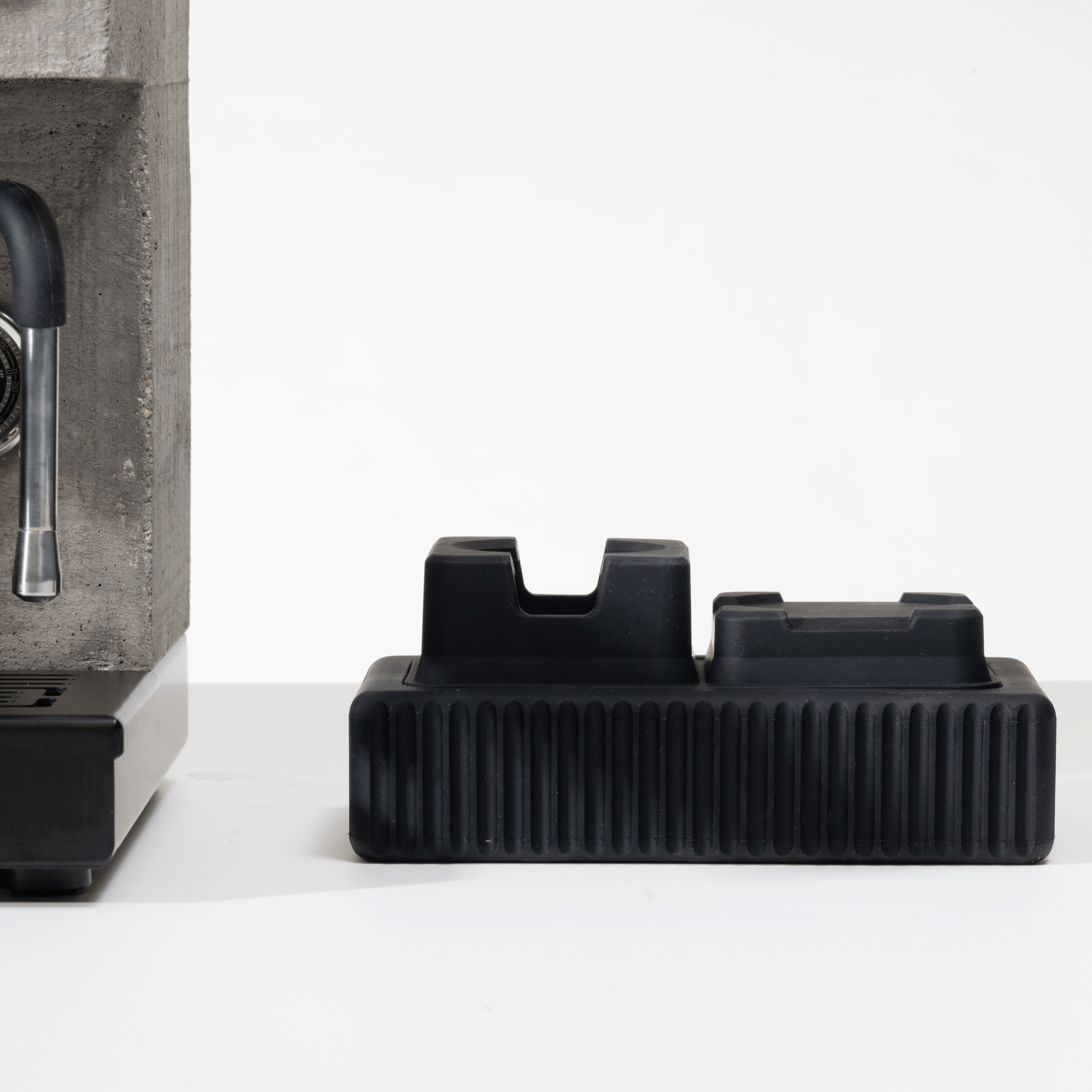 Compatible with both bottomless and double-spout portafilters, the grippy rubber Tamping Station is built to last — delivering a stable, confident tamping experience.
