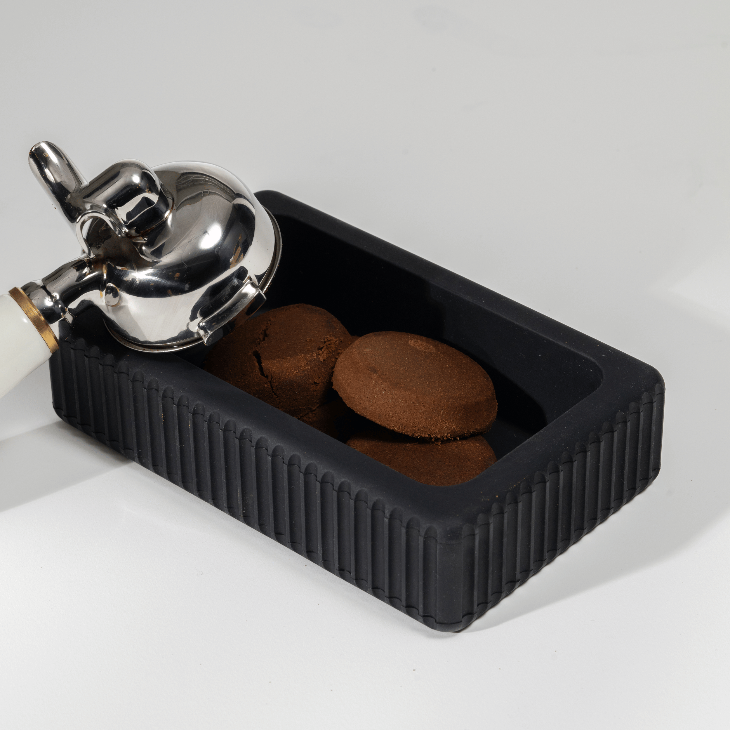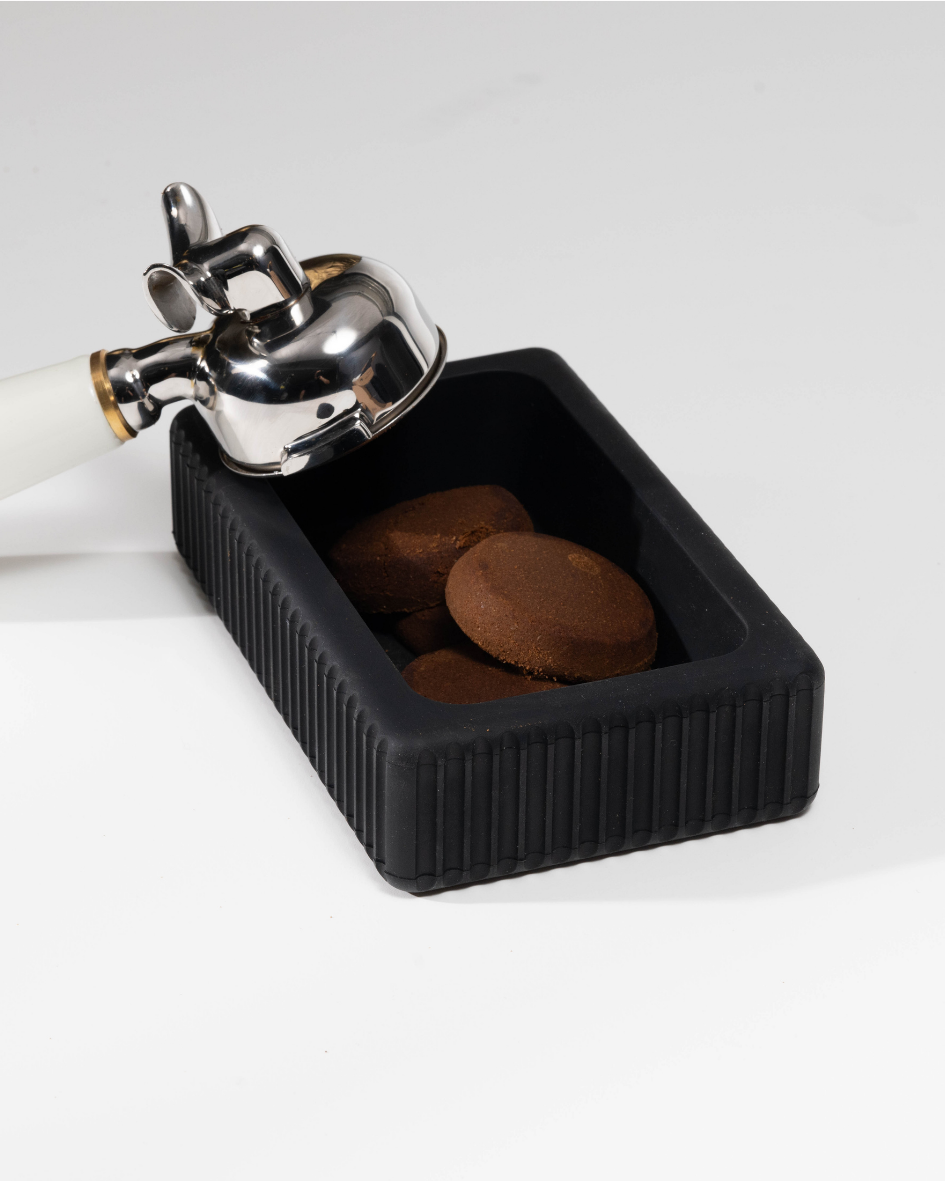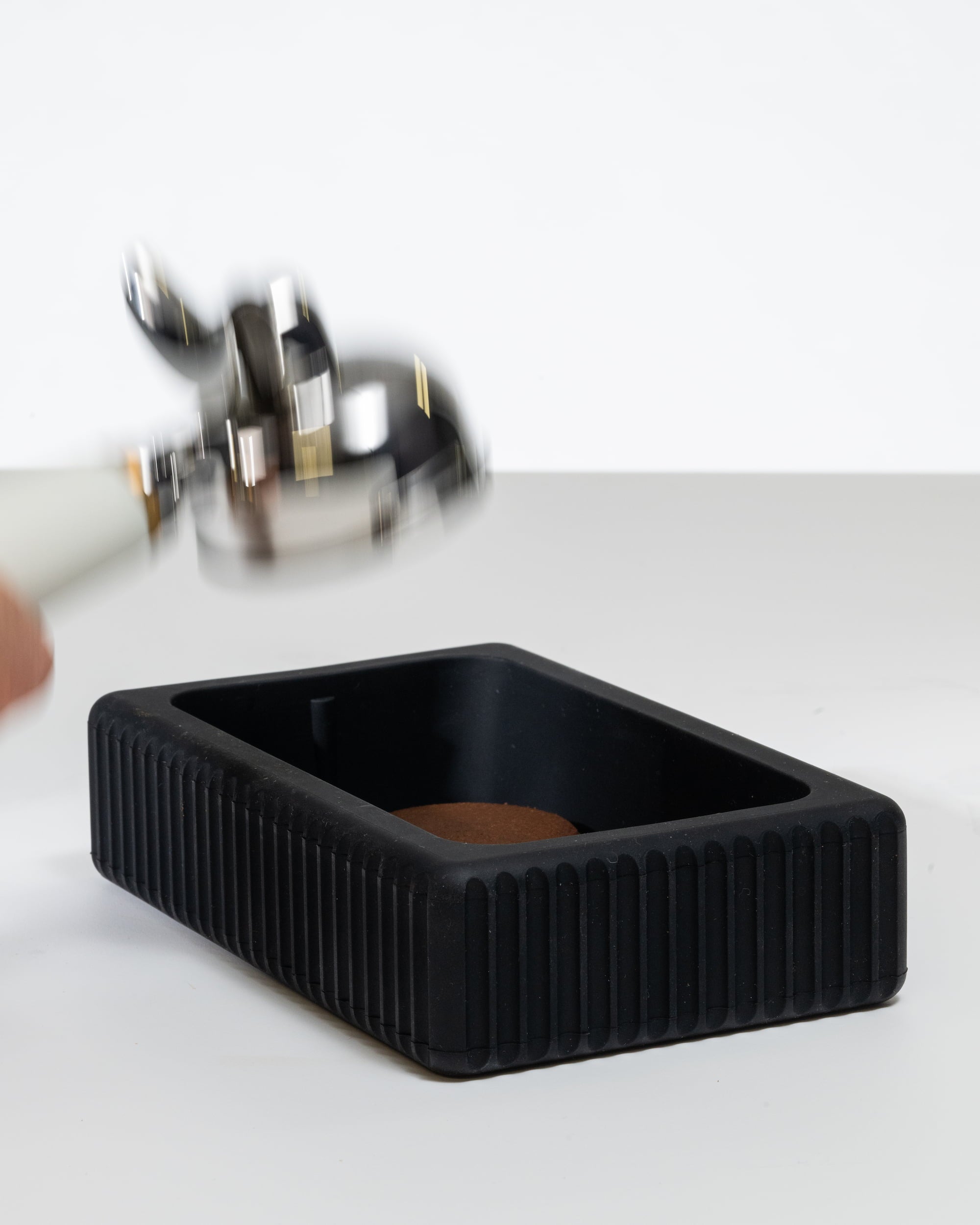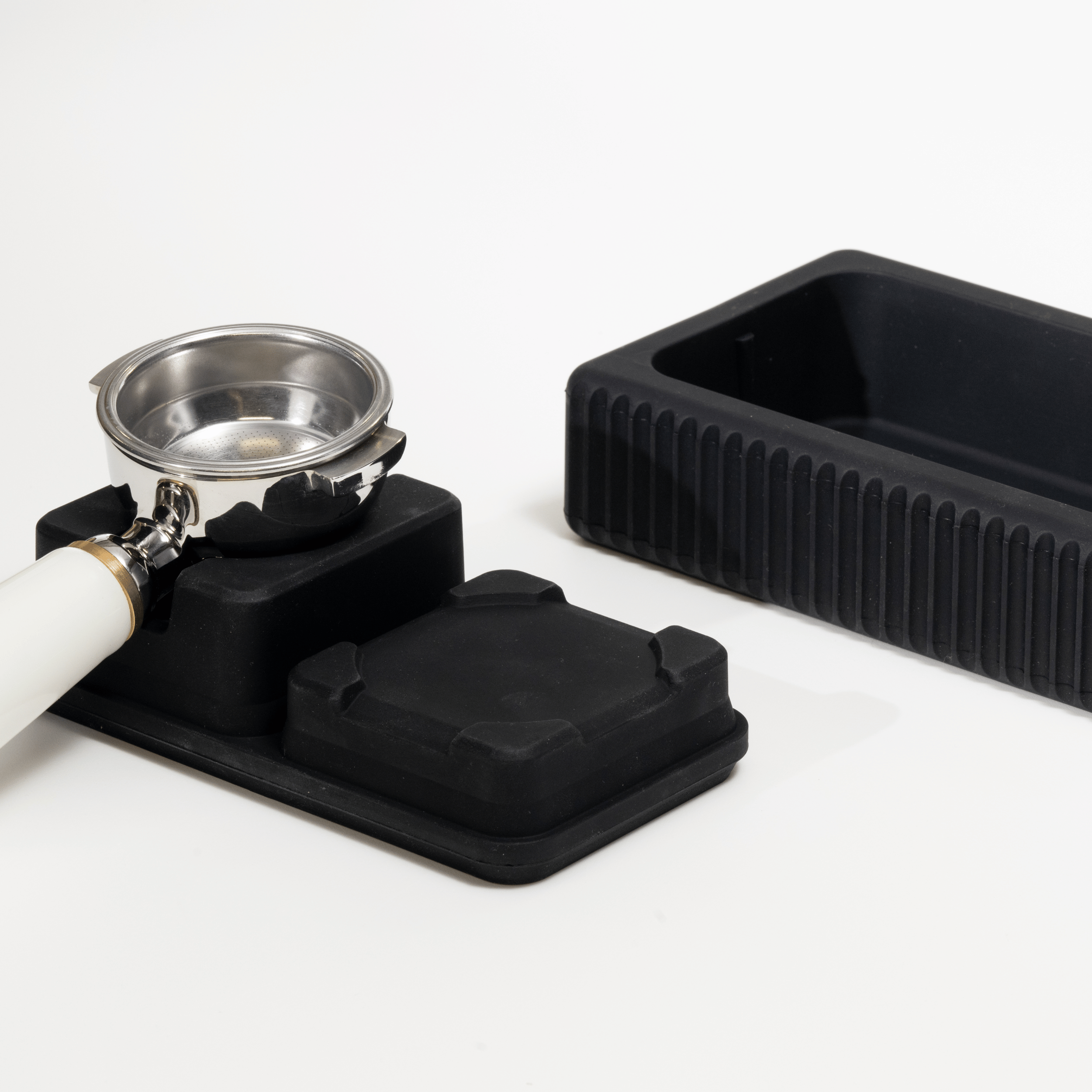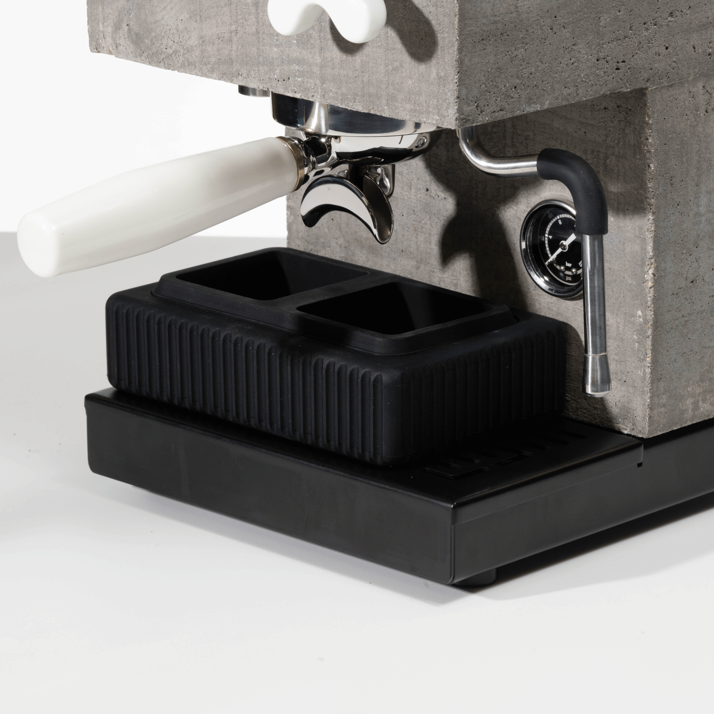 Designed as a pair, Knock Box and Tamping Station keep everything exactly where it should be. Cast from solid silicone rubber, the two-part system includes a Knock Box for your coffee pucks and a Tamping Station compatible with bottomless and double-spout portafilters. The durable material absorbs impact while protecting your countertop, making clean-up effortless and contained.